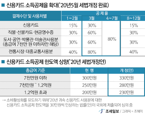가장 큰 부분은 신용카드 소득공제 한도액 상향부분입니다.