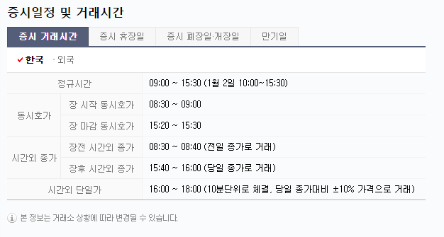 장전 시간외 거래시간