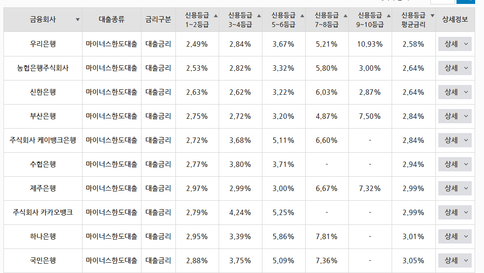 마이너스 통장에서 이율은 신용등급에 따라서 달라집니다.