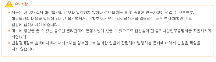 위 유의 사항 보시면 알겠지만, 법원 경매 정보 만 보고 입찰하면 실패할 가능성이 급격히 높아집니다.