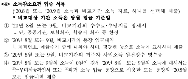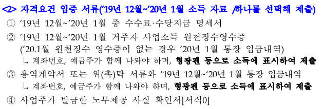 하지만, 통장사본, 신분증 사본과 아래 자격요건, 소득요건, 소득감소요건 관련 서류는 준비를 해가야 합니다.