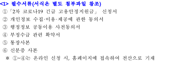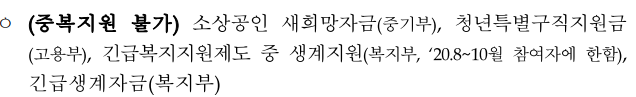 2. 아래 국가 지원 사업 신청 및 수급자는 중복 지원 및 지급이 불가함