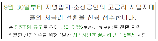 소상공인 대환대출을 9월30일부터 신청 접수를 한다고 합니다.
